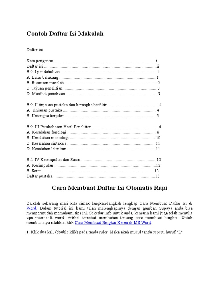 Cara Membuat Daftar Isi Otomatis Di Microsoft Word Dan Contohnya Gadgetgaul